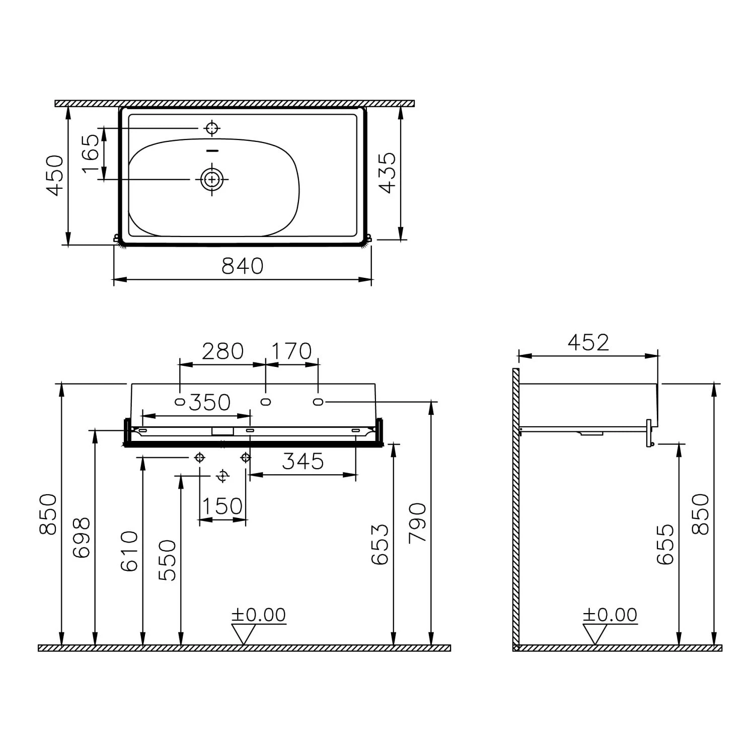 - 1 Hahnloch mittig