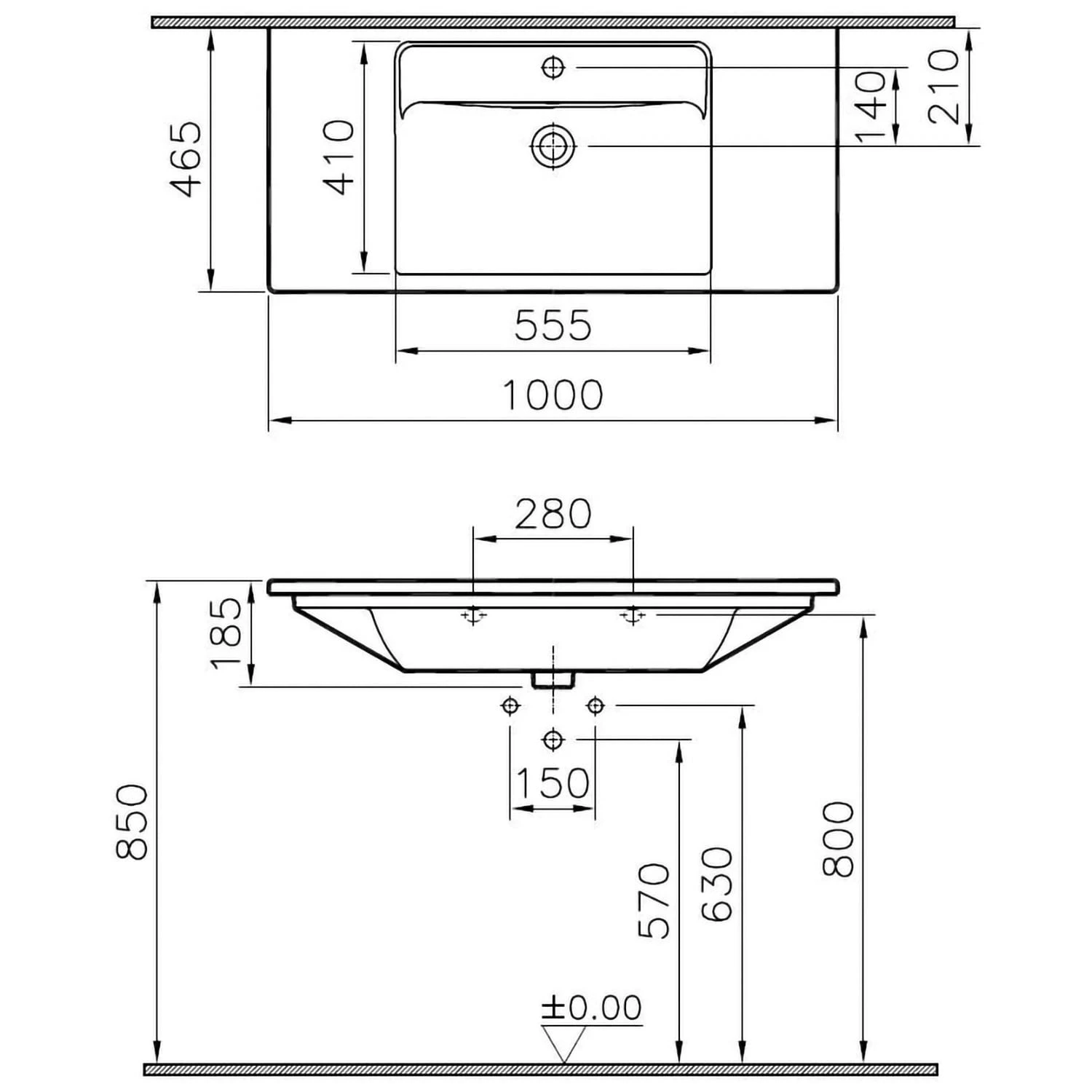VitrA Integra Möbelwaschtisch 100 cm, mit Überlaufloch, 1 Hahnloch mittig