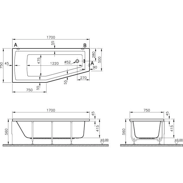 VitrA Integra Raumsparbadewanne links 170 x 75 cm