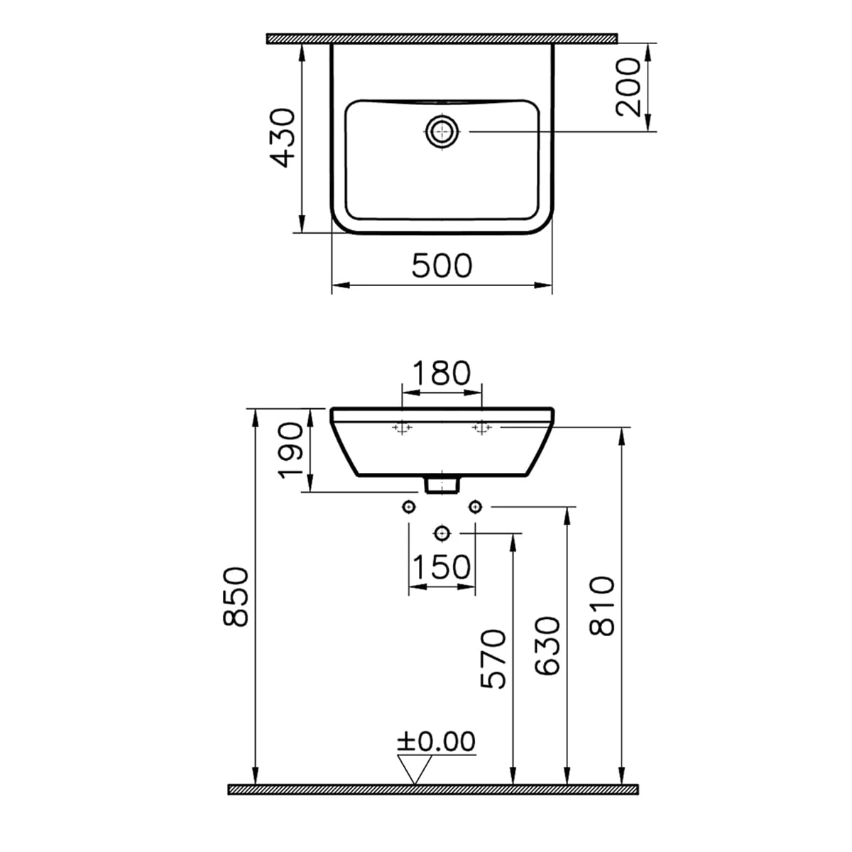 VitrA Integra Waschtisch 50 cm, mit Überlaufloch, ohne Hahnloch