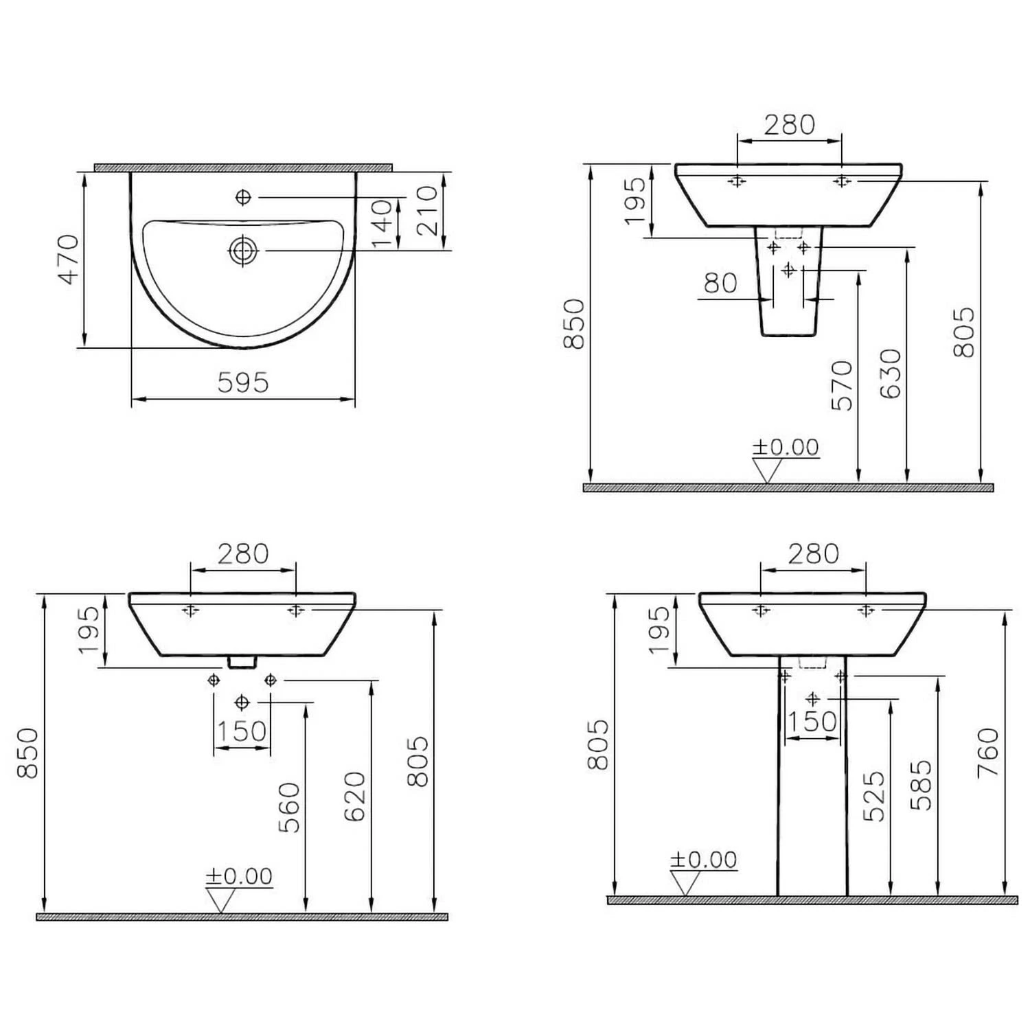VitrA Integra Waschtisch 59,5 cm, mit Überlaufloch, 1 Hahnloch mittig