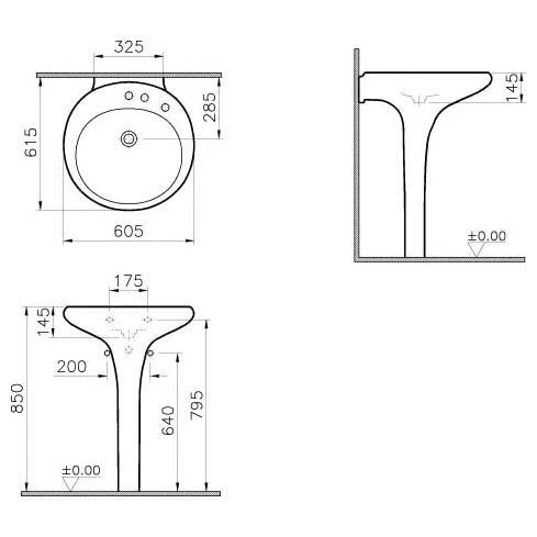 VitrA Istanbul Waschtisch mit integrierter Standsäule