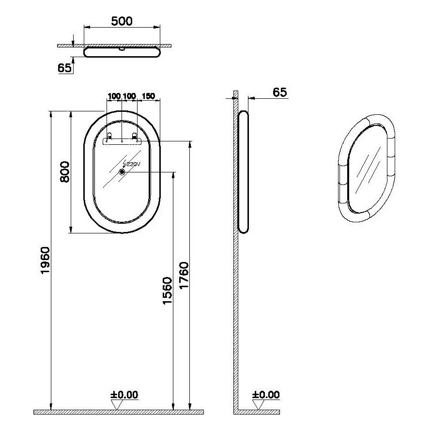 VitrA Liquid Wandspiegel mit LED-Beleuchtung 50 x 80 cm, mit Keramikrahmen