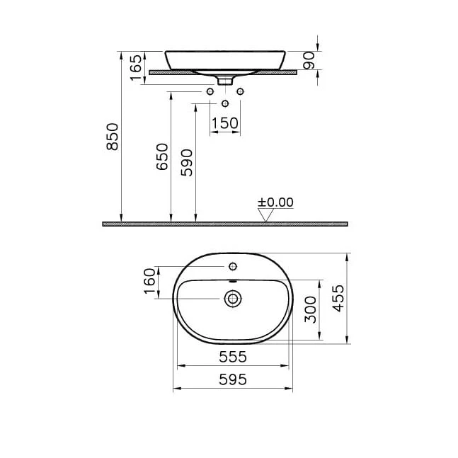 VitrA Metropole Aufsatzwaschtisch oval 59,5 x 45,5 cm mit Überlauf