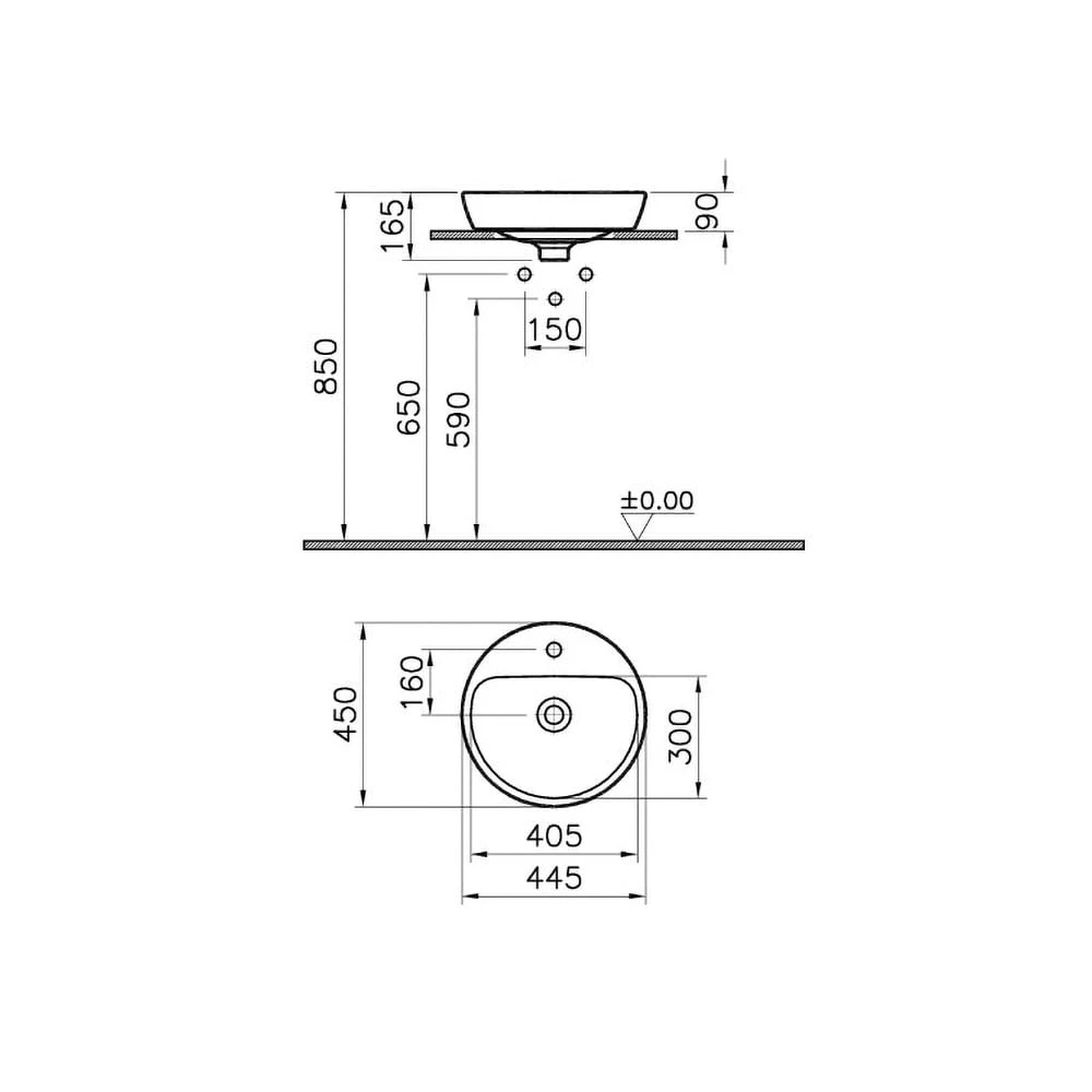VitrA Metropole Aufsatzwaschtisch rund 44,5 x 45 cm mit Überlauf