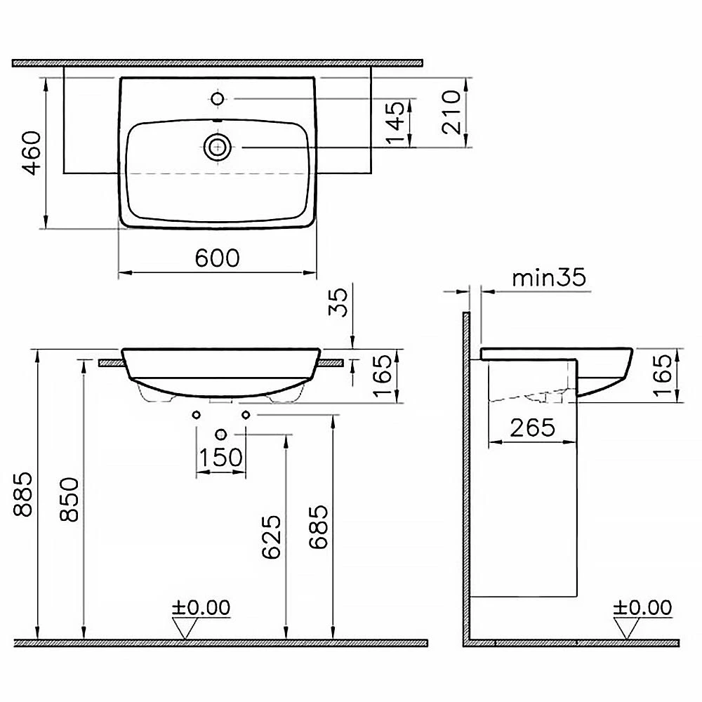 VitrA Metropole Halbeinbauwaschtisch 60 x 46 mit Überlauf
