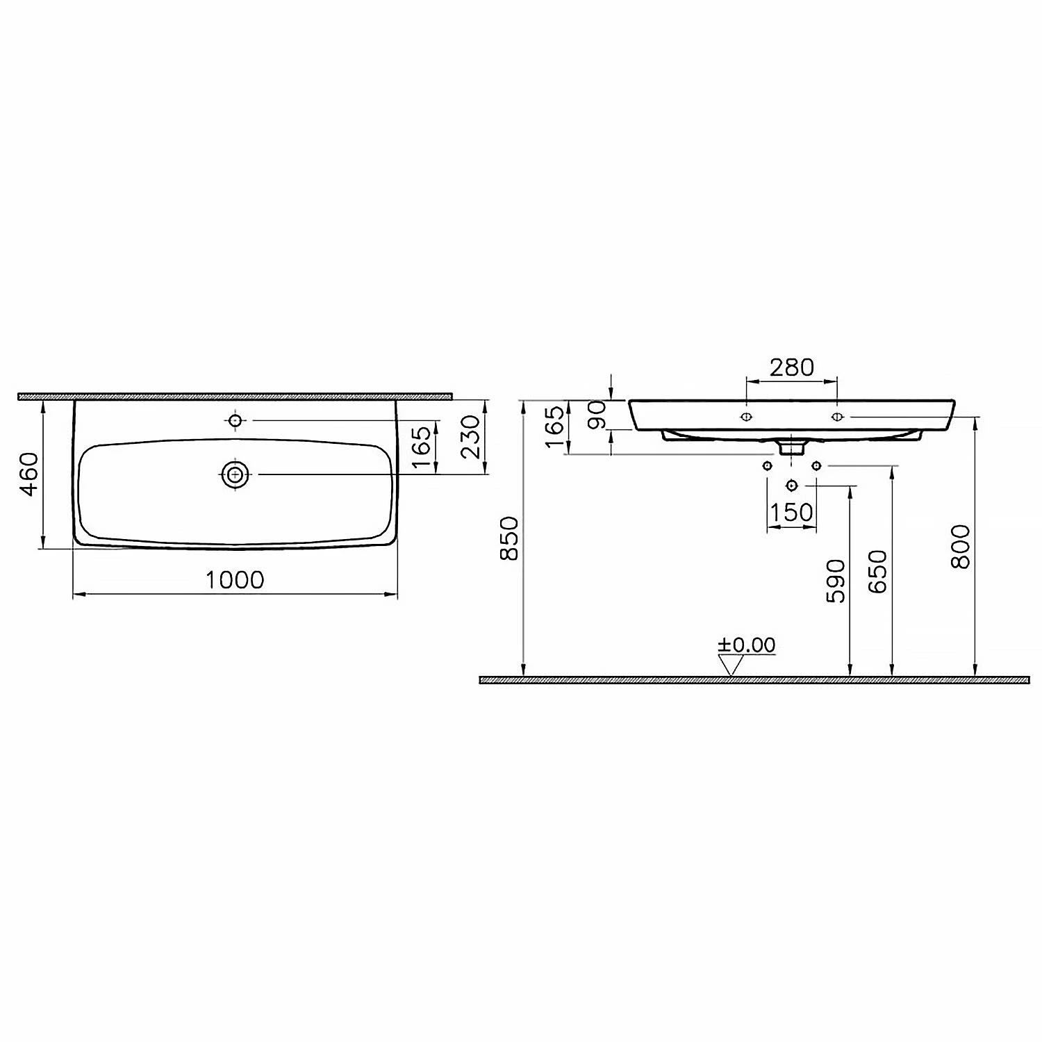 VitrA Metropole Waschtisch 100 x 46 cm ohne Überlauf