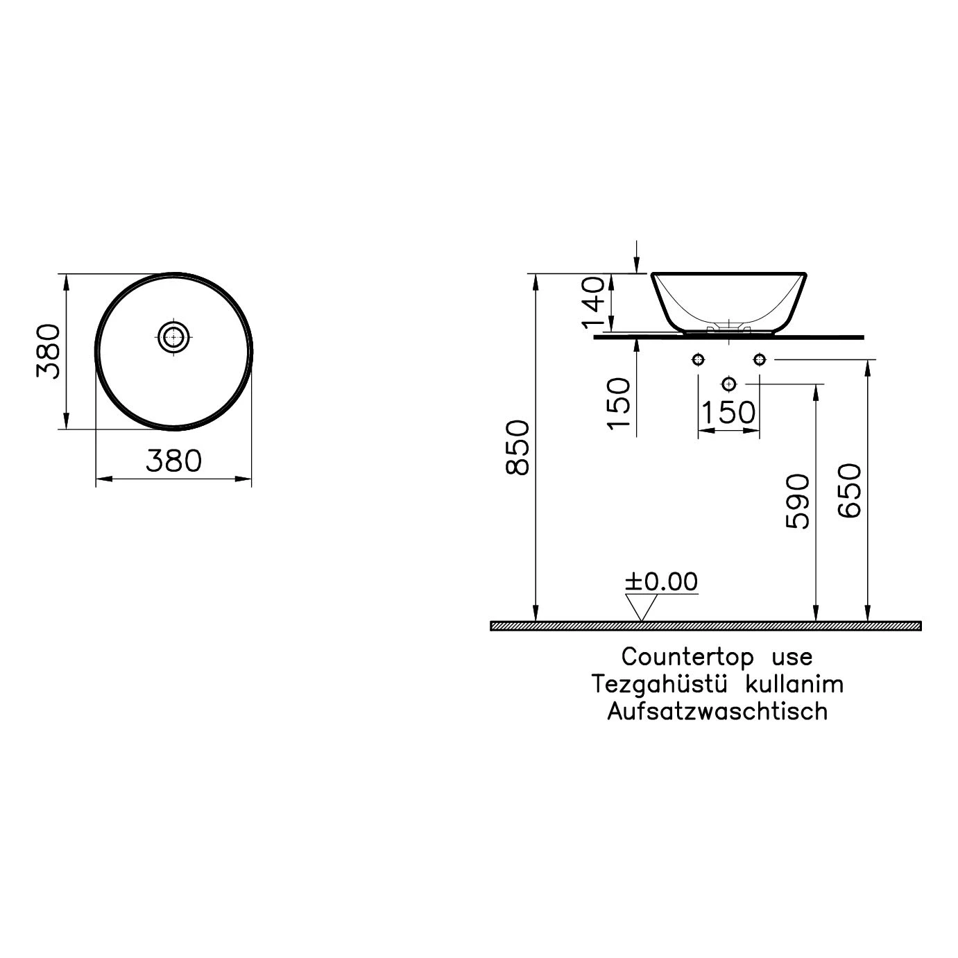 VitrA Options Geo Aufsatzschale 38 x 38 cm, ohne Überlaufloch, freistehend