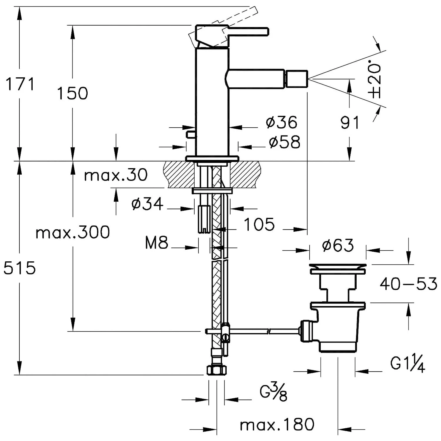 - mit Excenter-Ablaufgarnitur G 1 ¼“ (nur für Bidets mit Überlauf geeignet)