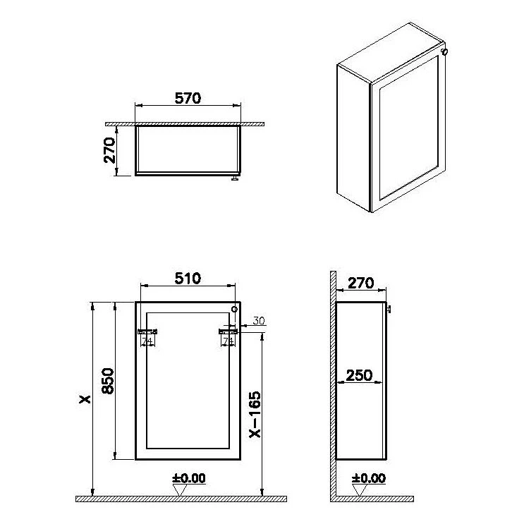 VitrA Root Classic Halbhochschrank Compact 57 x 85 cm, Türanschlag links