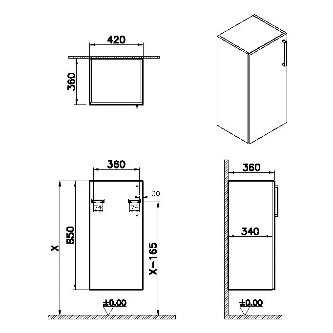 VitrA Root Flat Halbhochschrank 42 x 85 cm, Türanschlag links
