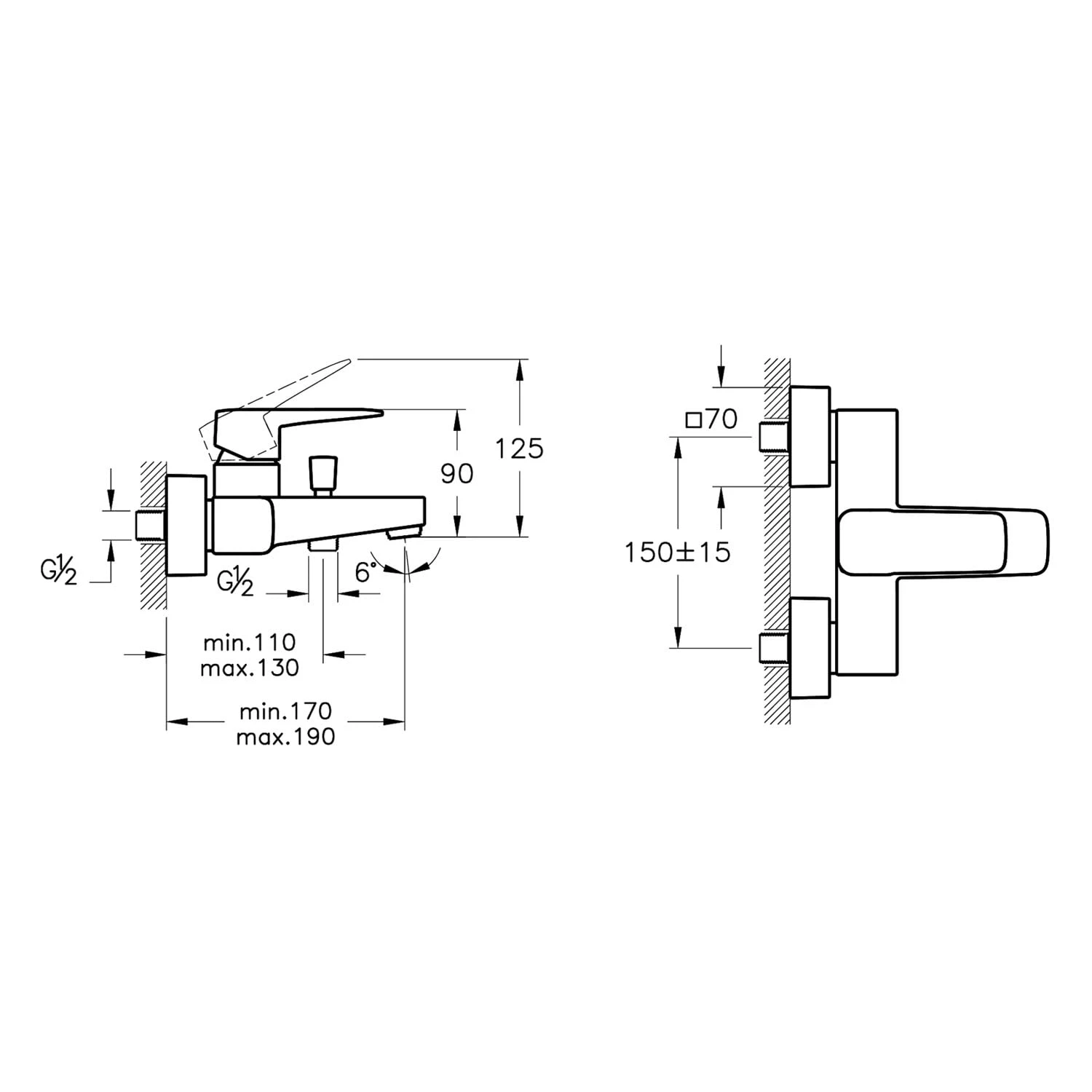 VitrA Root Square Einhebel-Wannenfüll- und Brausearmatur für Aufputz