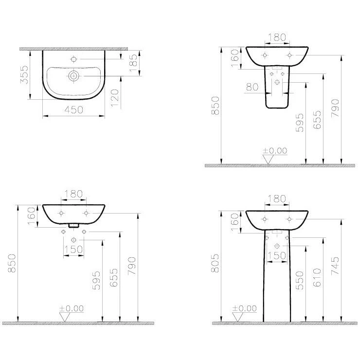 Auch mit Halb- oder Standsäule möglich. Diese bitte separat mitbestellen.