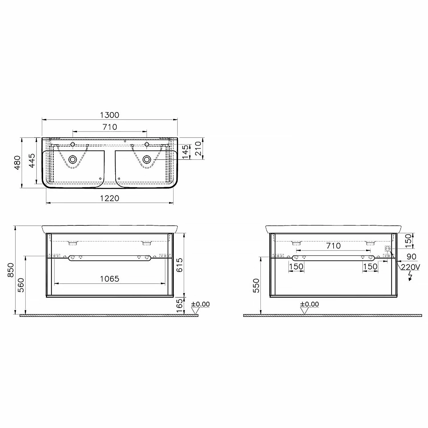 Vitra Sento Waschtischkombination 130 x 48 cm mit 2 Auszügen